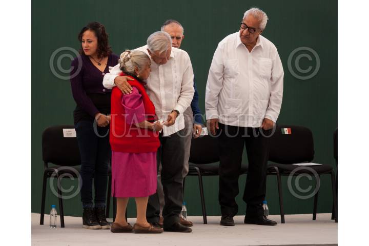 SAN MARTÍN TEXMELUCAN, PUEBLA.- Andrés Manuel López Obrador, presidente de México, durante la presentación y entrega de apoyos de por parte de la Secretaria del Bienestar. FOTO: GALO CAÑAS /CUARTOSCURO.COM