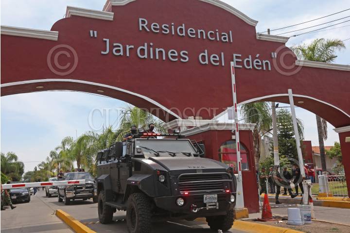 TLAJOMULCO DE ZUÑIGA, JALISCO, 21JUNIO2019.- Esta mañana en el fraccionamiento Jardines del Edén se enfrentaron a balazos civiles armados y autoridades de seguridad de diversas corporaciones en donde hasta el momento ahí cuatro personas fallecidas, dos personas heridas y ocho detenidos. FOTO: FERNANDO CARRANZA GARCIA / CUARTOSCURO.COM