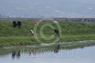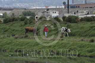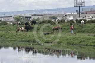 LERMA, ESTADO DE MÉXICO, 21JUNIO2019.- A orillas del Río Lerma se continúa practicando el pastoreo de ganado, como es el caso de este par de hombres que cuidan sus vacas en este lugar a pesar del fuerte olor que prevalece en la zona por la contaminación del río. FOTO: CRISANTA ESPINOSA AGUILAR /CUARTOSCURO.COM