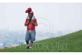 CIUDAD DE MÉXICO, 22JUNIO2019.- Un señor camina con su hijo en el Cerro de la Estrella a pesar de la mala calidad de aire que hay en la capital. El valor máximo es de 120 puntos del índice de ozono registrados en la alcaldía Álvaro Obregón. FOTO: GRACIELA LÓPEZ /CUARTOSCURO.COM