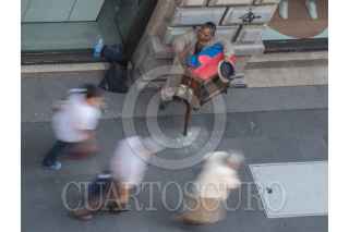 CIUDAD DE MÉXICO, 20JUNIO2019.- Una mujer que toca el organillero pide cooperación a traseuntes sobre la calle Madero en el centro histórico. FOTO: MARIO JASSO /CUARTOSCURO.COM