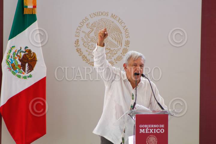 TULUM, QUINTANA ROO, 23JUNIO2019.- Andrés Manuel López Obrador, Presidente de México, encabezó la entrega de apoyos de los "Programas Integrales para el Bienestar. Tren Maya", en la Unidad Deportiva de Tulum. Estuvo acompañado de María Luisa Albores González, Secretaria de Bienestar; Luisa María Alcalde, Secretaria de Trabajo y Previsión Social; Beatriz Gutiérrez Müller, Presidenta honoraria del Consejo Asesor Honorario de la Coordinación Nacional Memoria Histórica y Cultural de México, y de Carlos Manuel Joaquín González, gobernador de Quintana Roo. FOTO: PRESIDENCIA /CUARTOSCURO.COM