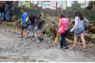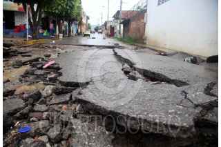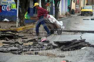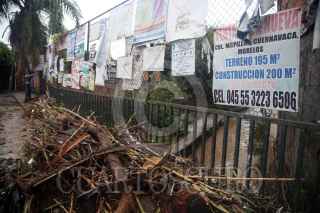 CUERNAVACA, MORELOS, 24JUNIO2019. La lluvia de esta mañana provocó el desborde de una barranca en la colonia Santa Martha; por la gran cantidad de basura que arrastró, una parroquia se inundó parcialmente y muchísima tierra y piedra se acumuló en la vía pública lo que ocasionó que se levantara el asfalto de la calle San Fernando. FOTO: MARGARITO PÉREZ RETANA /CUARTOSCURO.COM