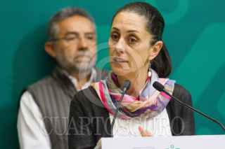CIUDAD DE MÉXICO, 24JUNIO2019.- Claudia Sheinbaum, jefa del Gobierno de la Ciudad acompañada de Rafael Carmona del Sistema de Aguas de la Capital y de los alcaldes de Coyoacán, Manuel Negrete, Iztapalapa Clara Brugada y de Tláhuac Raymundo Martínez, anunciaron un corte de agua a éstas tres demarcaciones. FOTO: VICTORIA VALTIERRA /CUARTOSCURO.COM