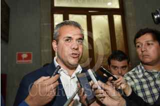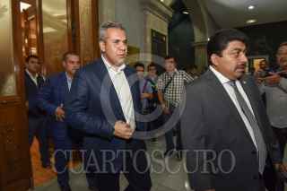 TOLUCA, ESTADO DE MÉXICO, 24JUNIO2019.- Fernando Vilchis Contreras alcalde de Ecatepec al término de una reunión con 40 alcaldes del Estado de México con diputados locales encabezados por Maurilio Hernández, presidente de la Junta de Coordinación Política, informó que 80 alcaldes mexiquenses conformarán un frente común para exigir la liberación de los recursos del Fondo Estatal de Fortalecimiento Municipal (FEFOM) el cual ha sido retenido y sería empleado para obras y acciones prioritarias en sus municipios. FOTO: CRISANTA ESPINOSA AGUILAR /CUARTOSCURO.COM