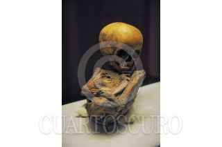 CIUDAD DE MÉXICO, 24JUNIO2019.- “Pepita” era una niña de apenas dos años y medio de edad al morir, posiblemente de una enfermedad pulmonar, en el 300 a.C., hoy es una de las momias más antiguas de México. Desde 2002, cuando fue descubierta por pobladores de la comunidad de Altamira, en la Sierra Gorda de Querétaro, el Instituto Nacional de Antropología e Historia (INAH), con apoyo de otras instituciones, le ha hecho varios estudios y tratamientos de conservación; actualmente forma parte de la colección de cuerpos momificados que se exhibe en el Museo de El Carmen. En el marco de la exposición Momias. Ilusiones de vida eterna, el recinto organizó un ciclo de conferencias para ampliar el conocimiento del público sobre estos acervos que, además de despertar fantasías, son importantes portadores de información sobre las sociedades del pasado. La segunda sesión tendrá lugar el este martes 25 de junio a las 16:30 horas, en el auditorio del museo. La momia “Pepita”, bautizada así por la gente que hizo el hallazgo, fue abordada en la primera jornada por la arqueóloga Elizabeth Mejía Pérez, investigadora del Centro INAH-Querétaro, quien ha estado al frente del equipo multidisciplinario que investiga el ejemplar desde que el Ministerio Público lo pusiera en manos del INAH, luego del reporte de los pobladores serranos. FOTO: INAH/ MAURICIO MARAT /CUARTOSCURO.COM