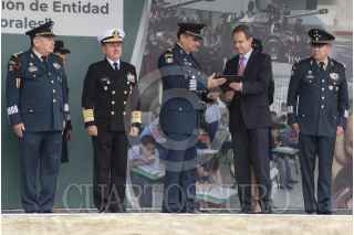 CIUDAD DE MÉXICO, 25JUNIO2019.- Luis Cresencio Sandoval, secretario de la Defensa Nacional; José Rafael Ojeda Durán, secretario de Marina, y Esteban Moctezuma Barragán, secretario de Educación Pública, encabezaron la ceremonia de Entrega de las Cédulas de Acreditación de Entidad de Evaluación y Certificación de Competencias Laborales, con la que la SEDENA al estar en el Sistema Nacional de Competencias podrá evaluar y acreditar la competencia laboral del personal militar. FOTO: MARIO JASSO /CUARTOSCURO.COM