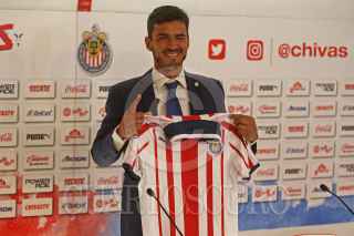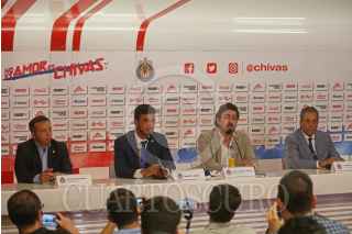 ZAPOPAN, JALISCO, 25JUNIO2019.- Amaury Vergara Presidente del Club Chivas de Guadalajara, Tomás Boy Director Técnico y Mariano Varela Director Deportivo del Club, encabezaron la presentación de Oswaldo Alanís como refuerzo del rebaño, esto en el Estadio Akron. FOTO FERNANDO CARRANZA GARCIA / CUARTOSCURO.COM