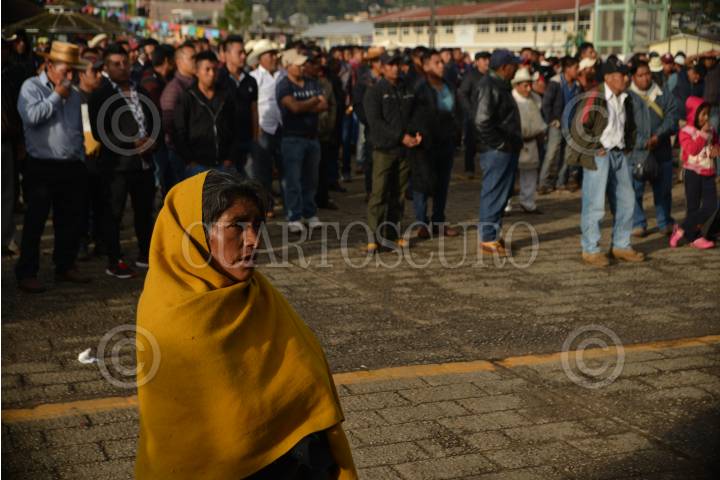 SAN JUAN CHAMULA, CHIAPAS, 25JUNIO2019.- Pobladores de 27 comunidades del municipio se reunieron en la Plaza San Juan Chamula para exigir el pago personalizado que el presidente municipal Ponciano Gomez Gomez prometió durante su campaña de siete mil pesos. FOTO: ISABEL MATEOS /CUARTOSCURO.COM
