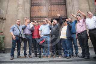 CIUDAD DE MÉXICO, 26JUNIO2019.- Maestros de distintas regiones de la Coordinadora Nacional de Trabajadores de la Educación (CNTE), durante su llegada a Palacio Nacional previo a sostener una reunión privada con Andrés Manuel López Obrador, presidente de México. FOTO: MARIO JASSO /CUARTOSCURO.COM