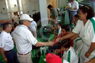 VILLAHERMOSA, TABASCO, 20MAYO2005.- Nelson Vargas Basañez, saludó y convivió con atletas con alguna discapacidad física, a quienes exhortó a continuar demostrando su pontecial deportivo, como el que desempeñaron en esta entidad. FOTO: Marco Polo Guzmán/CUARTOSCURO.COM