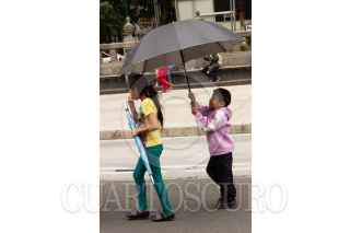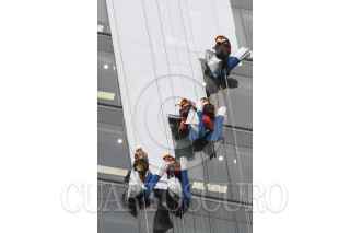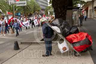 CIUDAD DE MÉXICO, 26JUNIO2019.- Un hombre observa desde las alturas un edificio, la marcha de los 43 de Ayotzinapa que recorre paseo de la Palma. FOTO: ROGELIO MORALES /CUARTOSCURO.COM
