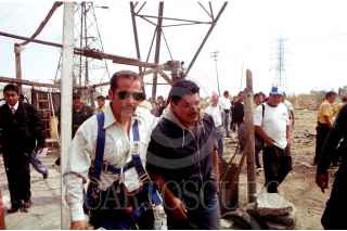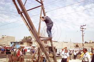 NEZAHUALCÓYOTL, EDO. MEX. 20MAYO2005.- El ex bracero Guadalupe Sánchez Eusebio, se subió a una torre de alta tensión ubicada sobre el Bordo Xochiaca y la calle Cariño de este municipio, con la intención de arrojarse, ya que fue defraudado por una de sus sobrinas por más de 50 mil dólares. FOTO: Oscar López/CUARTOSCURO.COM