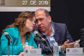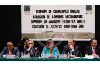 CIUDAD DE MÉXICO, 27JUNIO2019.- La diputada Julieta Kristal Vences Valencia, presidente de la Comisión de Asuntos Migratorios y Rubén Morena Valdez, presidente de la Comisión de Asuntos de Frontera Norte, durante la reunión de las Comisiones Unidas en materia de Asuntos Migratorios, Frontera Norte y Frontera Sur, realizada en la Cámara de Diputados. FOTO: GRACIELA LÓPEZ/CUARTOSCURO.COM