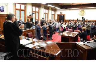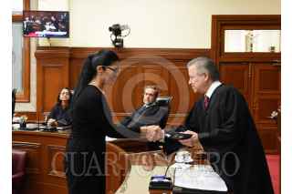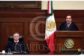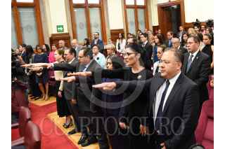 CIUDAD DE MÉXICO, 27JUNIO2019.- En sesión solemne conjunta de los Plenos de la Suprema Corte de Justicia de la Nación (SCJN) y del Consejo de la Judicatura Federal, el Ministro Arturo Zaldívar, Presidente del Alto Tribunal y del CJF, tomó protesta a tres Jueces y tres Juezas de Distrito, a quienes les entregó el distintivo y las credenciales correspondientes. En el salón del Pleno del Alto Tribunal, el Ministro Javier Laynez Potisek afirmó que en el México contemporáneo cuidar el Estado de derecho, implica también la tutela de la imagen pública del juez, por ello es indispensable conducirse con ejemplar integridad y cuidar que su conducta se pliegue a las justas exigencias ciudadanas. FOTO: SCJN /CUARTOSCURO.COM