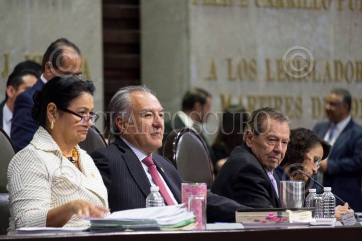 CIUDAD DE MÉXICO, 27JUNIO2019.- Alfonso Ramírez Cuéllar, secretario de la Comisión de Hacienda y el diputado Pablo Gómez Álvarez del partido de Morena conversaron durante la la Sesión Extraordinaria en materia del Plan de Desarrollo 2019-2024, el cual fue aprobado con 304 votos a favor, 3 abstenciones y 139 votos en contra, en la Cámara de Diputados. FOTO: GRACIELA LÓPEZ /CUARTOSCURO.COM