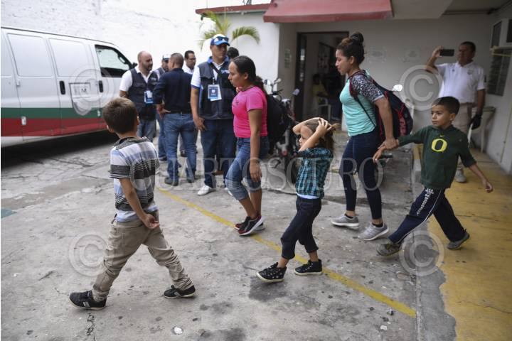 VERACRUZ, VERACRUZ, 27JUNIO2019.- Aproximadamente 260 migrantes centroamericanos fueron detenidos en diferentes hoteles de la ciudad de Veracruz, mediante una redada realizada por el Instituto Nacional de Migración y la Secretaria de Marina. Los migrantes fueron trasladados en autobuses a un albergue temporal para posteriormente remitirlos a la delegación migratoria de Acayucan. FOTO: VICTORIA RAZO /CUARTOSCURO.COM