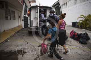 VERACRUZ, VERACRUZ, 27JUNIO2019.- Aproximadamente 260 migrantes centroamericanos fueron detenidos en diferentes hoteles de la ciudad de Veracruz, mediante una redada realizada por el Instituto Nacional de Migración y la Secretaria de Marina. Los migrantes fueron trasladados en autobuses a un albergue temporal para posteriormente remitirlos a la delegación migratoria de Acayucan. FOTO: VICTORIA RAZO /CUARTOSCURO.COM