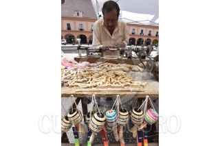 TOLUCA, ESTADO DE MÉXICO, 28JUNIO2019.- Antonio Torres San Juan, originario de San Antonio la Isla, lleva más de 25 años elaborando juguetes de madera en torno de diferentes tamaños, este oficio lo aprendió de su padre y su abuelo quienes se dedicaban a mi mismo, ahora el trata de difundir la elaboración de estas artesanías acudiendo a las ferias artesanales que se realizan en Toluca, mostrando su trabajo diario. FOTO: CRISANTA ESPINOSA AGUILAR /CUARTOSCURO.COM