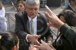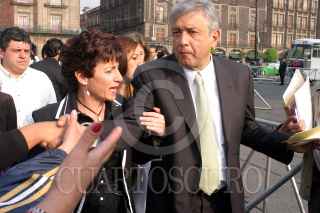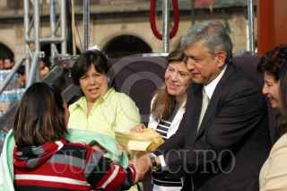 MEXICO, D.F., 27MAYO2005.- Andrés Manuel López Obrador, jefe de gobierno, encabezó la ceremonia de entrega a microcréditos en la plancha del Zócalo. FOTO: Moisés Pablo/CUARTOSCURO.COM