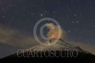 PUEBLA, PUEBLA, 29JUNIO2019.- El volcán Popocatépetl presentó incandescencia e intensa actividad durante la madrugada, y amanecer de este sábado. FOTO: MIREYA NOVO /CUARTOSCURO.COM