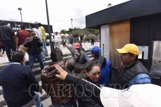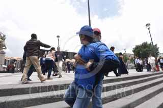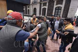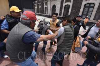 TOLUCA, ESTADO DE MÉXICO, 01JULIO2019.- Inspectores de comercio del Ayuntamiento de Toluca agredieron a dos fotógrafos mientras documentaban las agresiones contra gente que se encontraba en el Teatro Morelos y el decomiso de un carro de papas, les intentaron quitar su equipo de trabajo y los golpearon en cuerpo y cara. FOTO: CRISANTA ESPINOSA AGUILAR /CUARTOSCURO.COM