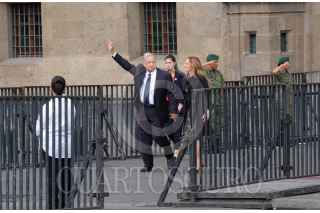 CIUDAD DE MÉXICO, 01JULIO2019.- Andrés Manuel López Obrador, Presidente de México y su esposa Beatriz Gutiérrez Müller salieron de Palacio Nacional para el primer informe del jefe del ejecutivo en el Zócalo capitalino. FOTO: GRACIELA LÓPEZ /CUARTOSCURO.COM