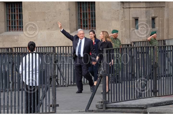 CIUDAD DE MÉXICO, 01JULIO2019.- Andrés Manuel López Obrador, Presidente de México y su esposa Beatriz Gutiérrez Müller salieron de Palacio Nacional para el primer informe del jefe del ejecutivo en el Zócalo capitalino. FOTO: GRACIELA LÓPEZ /CUARTOSCURO.COM