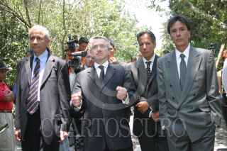 MEXICO, D.F. 06JUNIO2005.- Al centro el precandidato presidencial del PAN, acompañado de los hermanos del fallecido Adolfo Aguilar Zinser, Valente, Gonzalo y Alonso, durante el velorio realizado en la casa de la familia. FOTO: Sandra Perdomo/CUARTOSCURO.COM