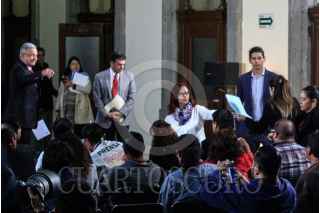 CIUDAD DE MÉXICO, 02JULIO2019.- El presidente de la República, Andrés Manuel López Obrador, durante la conferencia matutina diaria en el Palacio Nacional. Al finalizar reportera le entrego unos documentos refiriéndose a los despidos de la agencia de noticias del estado. FOTO: ANDREA MURCIA /CUARTOSCURO.COM