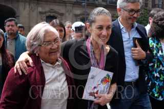 CIUDAD DE MÉXICO, 02JULIO2019.- Claudia Sheinbaum, jefa de Gobierno saludó a una capitalina en la calle 20 de noviembre al término de la presentación de acciones de fortalecimiento de la estrategia de Seguridad en la capital, la cual se realizó en el Museo de la Ciudad. FOTO: GRACIELA LÓPEZ /CUARTOSCURO.COM