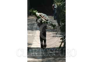 MEXICO, D.F. 06JUNIO2005.- Coronas de flores desfilaron durante el velorio del polìtico, Aldolfo Aguilar Zinser, realizado en casa de la familia. FOTO: Sandra Perdomo/CUARTOSCURO.COM