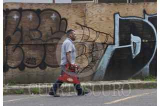 CIUDAD DE MÉXICO, 02JULIO2019.- Un bolero camina presuroso con su caja en mano en los alrededores del metro Taxqueña. FOTO: ROGELIO MORALES /CUARTOSCURO.COM
