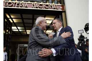 CIUDAD DE MÉXICO, 02JULIO2019.- Jesús Seade Kuri, Subsecretario para América del Norte; Ernesto Prieto Ortega, Director General de la Lotería Nacional para la Asistencia Pública, y Pierre Alarie, embajador de Canadá en México, encabezaron esta noche el sorteo mayor de la Lotería Nacional conmemorativo al 75 aniversario de Relaciones Diplomáticas entre México y Canadá. FOTO: MARIO JASSO /CUARTOSCURO.COM