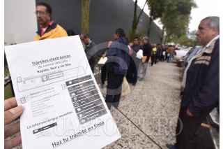 TOLUCA, ESTADO DE MÉXICO, 03JULIO2019.- Desde muy temprana hora se volvieron a formar automovilistas en el Centro de Servicios Administrativos “Miguel Hidalgo y Costilla” para poder realizar el trámite de reemplacamiento gratuito, observándose de nueva cuenta largas filas; algunas personas es el segundo día que se forman ya que durante el primer día no pudieron realizar su trámite, y después de intentarlo a través de la página de internet tampoco pudieron hacerlo, faltando al trabajo y a la escuela. FOTO: CRISANTA ESPINOSA AGUILAR /CUARTOSCURO.COM
