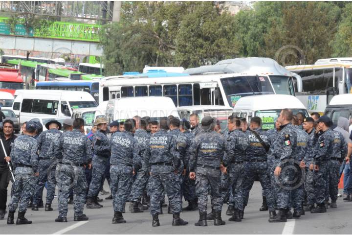 ECATEPEC DE MORELOS, ESTADO DE MÉXICO, 03JULIO2019.- Integrantes de la Policía Federal y Gendarmería bloquearon la autopista México-Pachuca, casi a la altura del Río de los Remedios, para protestar por su reubicación a la Guardia Nacional, ya que ellos argumentan que les bajarán el salario, perderán prestaciones y antigüedad, la movilización causo molestias con las personas que buscaban llegar a sus centros de trabajo. FOTO: ARMANDO MONROY /CUARTOSCURO.COM