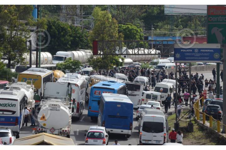 ECATEPEC DE MORELOS, ESTADO DE MÉXICO, 03JULIO2019.- Integrantes de la Policía Federal y Gendarmería bloquearon la autopista México-Pachuca, casi a la altura del Río de los Remedios, para protestar por su reubicación a la Guardia Nacional, ya que ellos argumentan que les bajarán el salario, perderán prestaciones y antigüedad, la movilización causo molestias con las personas que buscaban llegar a sus centros de trabajo. FOTO: ARMANDO MONROY /CUARTOSCURO.COM