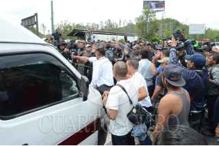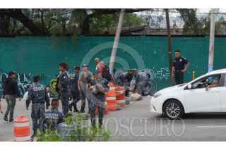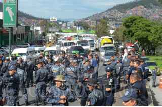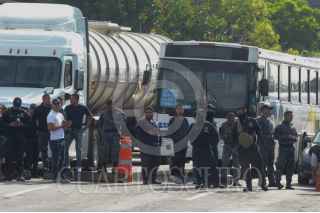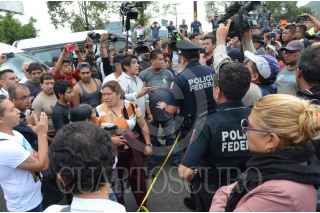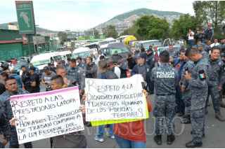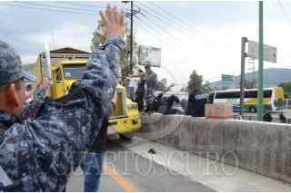 ECATEPEC DE MORELOS, ESTADO DE MÉXICO, 03JULIO2019.- Integrantes de la Policía Federal y Gendarmería bloquearon la autopista México-Pachuca, casi a la altura del Río de los Remedios, para protestar por su reubicación a la Guardia Nacional, ya que ellos argumentan que les bajarán el salario, perderán prestaciones y antigüedad, la movilización causo molestias con las personas que buscaban llegar a sus centros de trabajo. FOTO: ARMANDO MONROY /CUARTOSCURO.COM