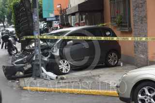 CIUDAD DE MÉXICO, 03JULIO2019.- Una mujer de la tercera edad perdió la vida a consecuencia preliminar de un infarto, lo que provocó que impactara en la pared de una vivienda y posteriormente contra un poste en Bergonias y Calzada Camarones, en la colonia Nueva Santa María, en Azcapotzalco. FOTO: CRISTIAN HERNÁNDEZ /CUARTOSCURO.COM