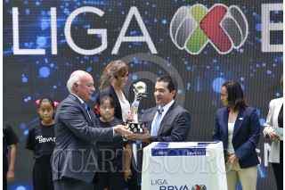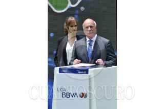 TOLUCA, ESTADO DE MÉXICO, 04JULIO2019.- Enrique Bonilla, Presidente de la Liga MX /Acenso MX y Eduardo Osuna, Vicepresidente y Director General de BBVA Bancomer, quienes renovaron por tres años el patrocinio por parte de la institución financiera a la Liga BBVA MX, Ascenso BBVA MX y se incorporó la Liga BBVA MX Femenil por primera vez. FOTO: CRISANTA ESPINOSA AGUILAR /CUARTOSCURO.COM