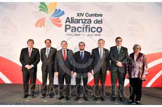 LIMA, PERÚ, 04JULIO2019.- Marcelo Ebrard Casaubon, secretario de Relaciones Exteriores, y Graciela Márquez secretaria de Economía, durante el inicio de la XIV Cumbre de la Alianza del Pacífico. FOTO: CUARTOSCURO.COM