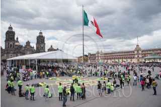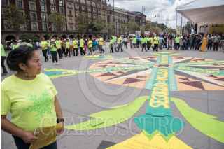 CIUDAD DE MÉXICO, 06JULIO2019.- Integrantes de la organización civil “Vía Orgánica” colocaron una mandala gigante hecho con mantas pintadas y semillas en la plancha del Zócalo, para considerar a la migración desde un punto de vista ambiental. FOTO: MARIO JASSO /CUARTOSCURO.COM