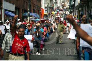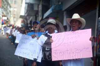 CUERNAVACA, MORELOS, 08JULIO2019. Manifestación de la organización Antorcha Campesina por las calles del centro de la ciudad, exigen al gobierno estatal la entrega de fertilizantes a sus militantes. FOTO: MARGARITO PÉREZ RETANA /CUARTOSCURO.COM