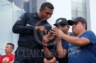 CIUDAD DE MÉXICO, 08JULIO2019.- Enrique Carpizo, licenciado y asesor, llegó nuevamente al Centro de Mando de la Policía Federal para anunciar que no se llegó a ningún acuerdo en Palacio Nacional para negociar la indemnización de los policías federales que no se van a integrar a la Guardia Nacional. En la imagen, el policía Mario Alberto Lover mostró uan fotografia dónde supuestamente existen mesas de diálogo alternas con los altos comisionados de la institución. FOTO: GRACIELA LÓPEZ /CUARTOSCURO.COM