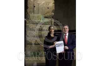 CIUDAD DE MÉXICO, 08JULIO2019.- Elsa Carrilo, primera mexicana que logra ser prima ballerina de Staatsballett, Berlín y Luis Raúl González Pérez, presidente de la CNDH, durante la presentación del libro “Murales, no Muros” en el museo de Memoria y Tolerancia. FOTO: ROGELIO MORALES /CUARTOSCURO.COM