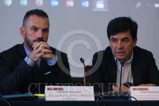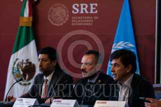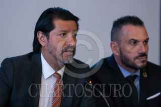 CIUDAD DE MÉXICO, 09JULIO2019.- Frédéric Vacheron, representante alterno UNESCO en México, y Jesús Ramírez Cuevas, director de Comunicación Social y Vocero de la Presidencia de la República, durante la conferencia de prensa para anunciar el “Seminario del Día Internacional de Lucha contra la Impunidad de los Crímenes contra Periodistas”. FOTO: GALO CAÑAS /CUARTOSCURO.COM