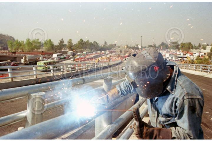 MEXICO,D.F., 08JUNIO2005.-Un trabajador le da los últimos detalles a el carril en donde circulara el Metrobus, que según las autoridades se inagurara el proximo 19 de Julio. FOTO:Oscar López/CUARTOSCURO.COM