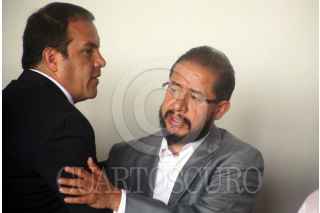 CUERNAVACA, MORELOS, 10JULIO2019. El gobernador del estado, Cuauhtémoc Blanco Bravo, se despide del delegado de programas sociales del gobierno federal, Hugo Erick Flores al finalizar el Foro “Derechos Humanos de los Niños y Niñas” del Programa Nacional de Derechos Humanos. FOTO: MARGARITO PÉREZ RETANA /CUARTOSCURO.COM