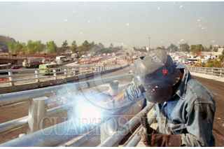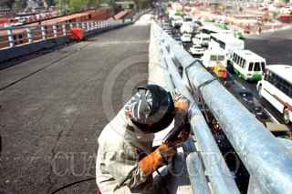 MEXICO,D.F., 08JUNIO2005.-Un trabajador le da los últimos detalles a el carril en donde circulara el Metrobus, que según las autoridades se inagurara el proximo 19 de Julio. FOTO:Oscar López/CUARTOSCURO.COM