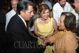 MEXICO, D.F 08JUNIO2005.- Jesús Ortega saluda a la dirigente Efigenia Martínez, observa Angelica de la Peña, esposa del peredista ; El senador del prd presentó su plataforma política para su candidatura como jefe de gobierno del DF en el polifurum Siqueiros. FOTO: Miguel Dimayuga/CUARTOSCURO.COM
